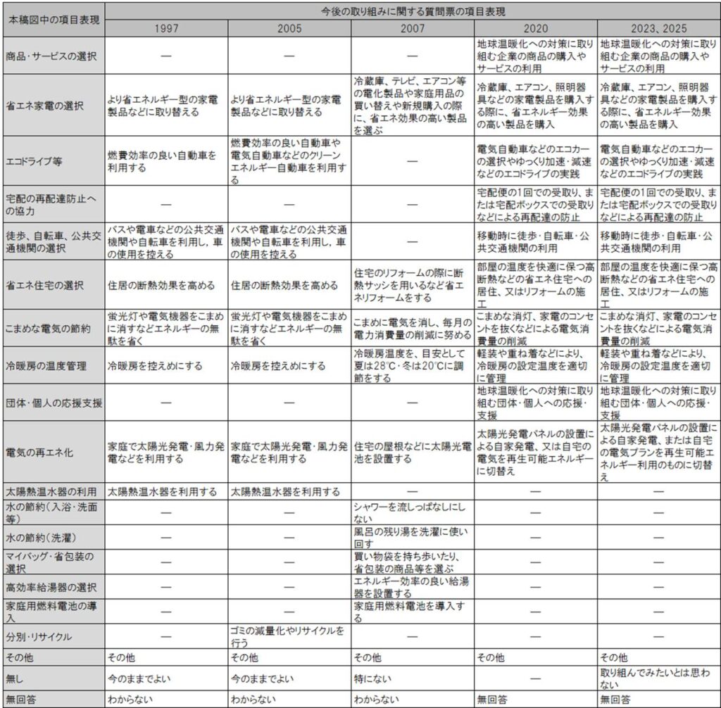 こうした背景として、京都議定書以降の国レベルでのさまざまな普及啓発キャンペーンの存在も見逃せません。特に2005~2007年のデータからは、チームマイナス6%キャンペーンの浸透によって国民的関心の加速につながったことがうかがえます。