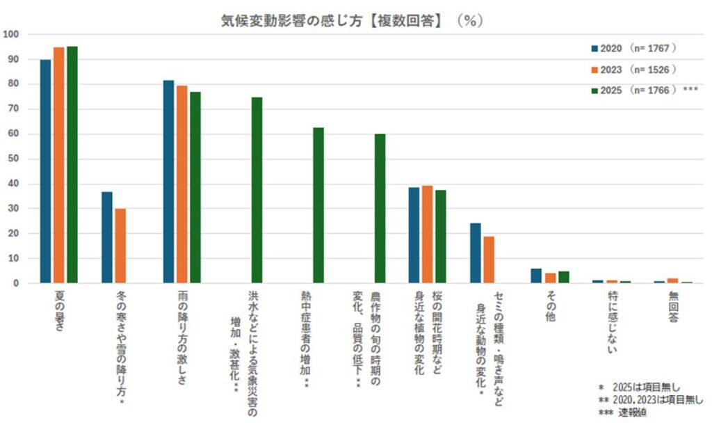 【質問内容】あなたが、日常生活の中で気候変動影響を感じることは何ですか。
